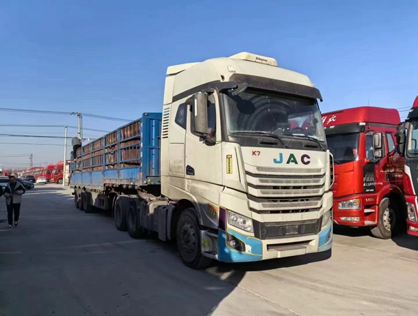 到ac米兰合作体育平台 一台二手江淮格尔发K7牵引车,2019年上户的江淮K7,搭配540马力德国曼发动机,采埃孚手动挡变速箱带原车液力缓速器,带2019年5月九州牌港版桥高低板花篮,13米长,1.8米高,2.55米宽,下开门,400KBPW车桥!全车轮胎八成新。